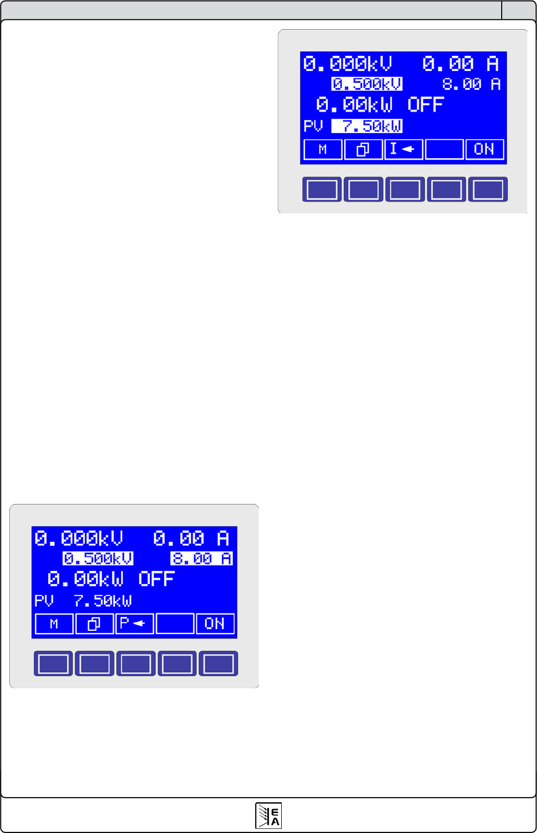 • Der Leistungssollwert kann bei eingeschaltetem Ausgang