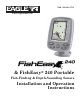 Auto bottom track: ........Yes. Zoom bottom track:.......Yes. Split-screen zoom: .........Yes. Surface water temp: .....Yes, built into transducer. Optional external temperature sensor or combo speed/temp sensor available. Speed/distance log: .......Yes, with optional speed sensor. This manual covers the FishEasy 240 and FishEasy 240 Portable. Both units operate the same way.