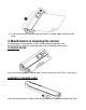 . Explanation of the status icons Item Function Description 1 SD card indicator 2 Battery indicator 3 Effect indicator Photos will be stored in microSD card Battery is full Empty battery Color or Mono 4 5 Counting indicator Selected resolution Show scanned files in microSD card High:600 dpi / Low:300 dpi 4. Using the scanner 4.1 Installing the battery 1. Open the battery door. 2. Insert 4x AA alkaline batteries into the battery compartment. 3.