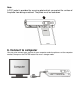 REINIGUNGSKARTE Die Reinigungskarte wie oben gezeigt einschieben und zweimal von einem zum anderen Ende schieben. Anmerkung: Zum Scannen eines Fotos wurde eine PVC-Hülle mitgeliefert, um die Oberfläche des Fotos vor Kratzern zu schützen. Das Foto muss mit seiner Vorderseite nach unten sein. 6. Anschluss an den Computer Schalten Sie das Gerät ein. Schließ en Sie es an Ihren Computer an (siehe Abbildung unten) und befolgen Sie die Anweisungen auf Ihrem Bildschirm.