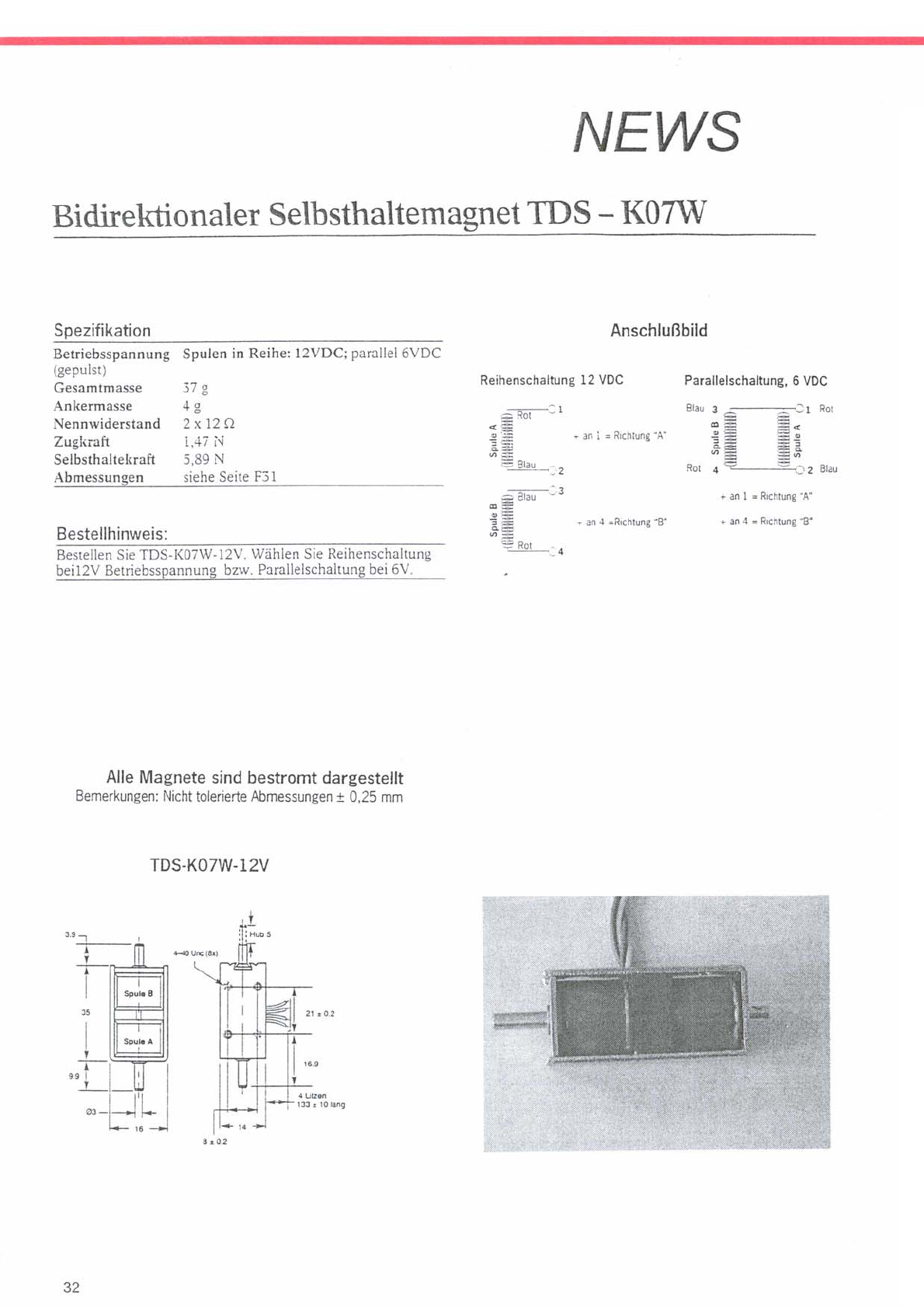 Solenoid hoisting 0.04 N 1.3 N 24 Vdc 0.8 W TDS-03A