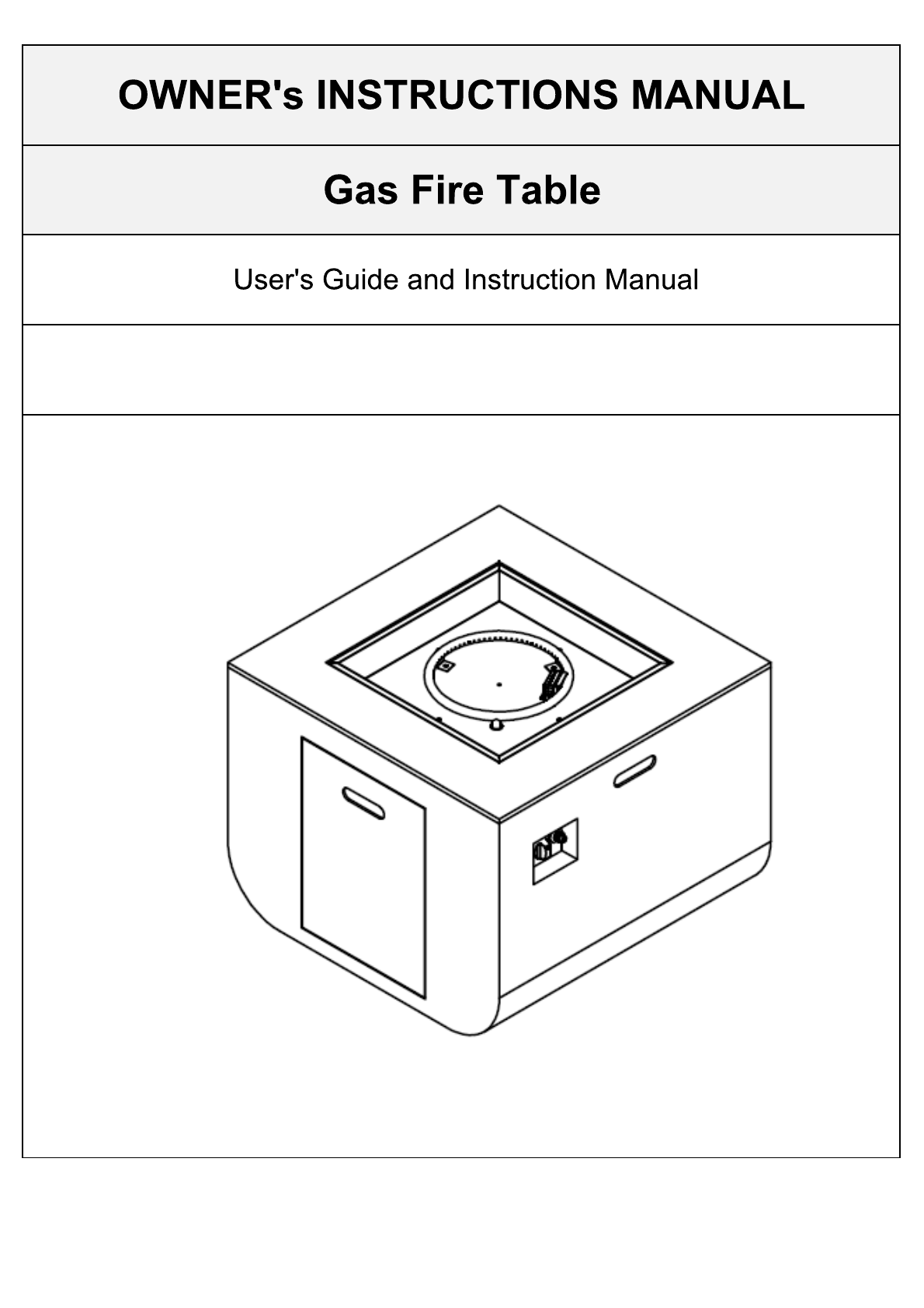 + DO NOT fill tank over 80% full. * The tank system must be set up for vapor withdrawal. * STOP using if any part of the Propane Gas Tank is damaged. Rust and dents in tank may be hazardous and should be inspected by a Gas Supplier. « DO NOT burn anything other than the provided materials for this Fire Table. + Keep away from the unit for the first 30 minutes after Igniting your unit for the first time, as lava rocks could pop out and cause injury. Should any rocks pop out, discard them.
