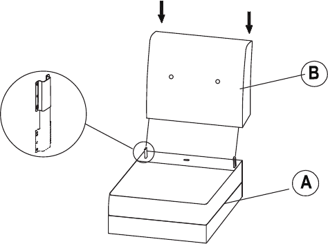 3.Slide the Back Cushion (B) into the Seat Frame (A) & align the bracket on the Seat Frame (A)
