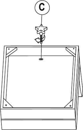 Insert thumb bolts (C) into holes where on the middle of Seat Frame (A) and tighten the bolts