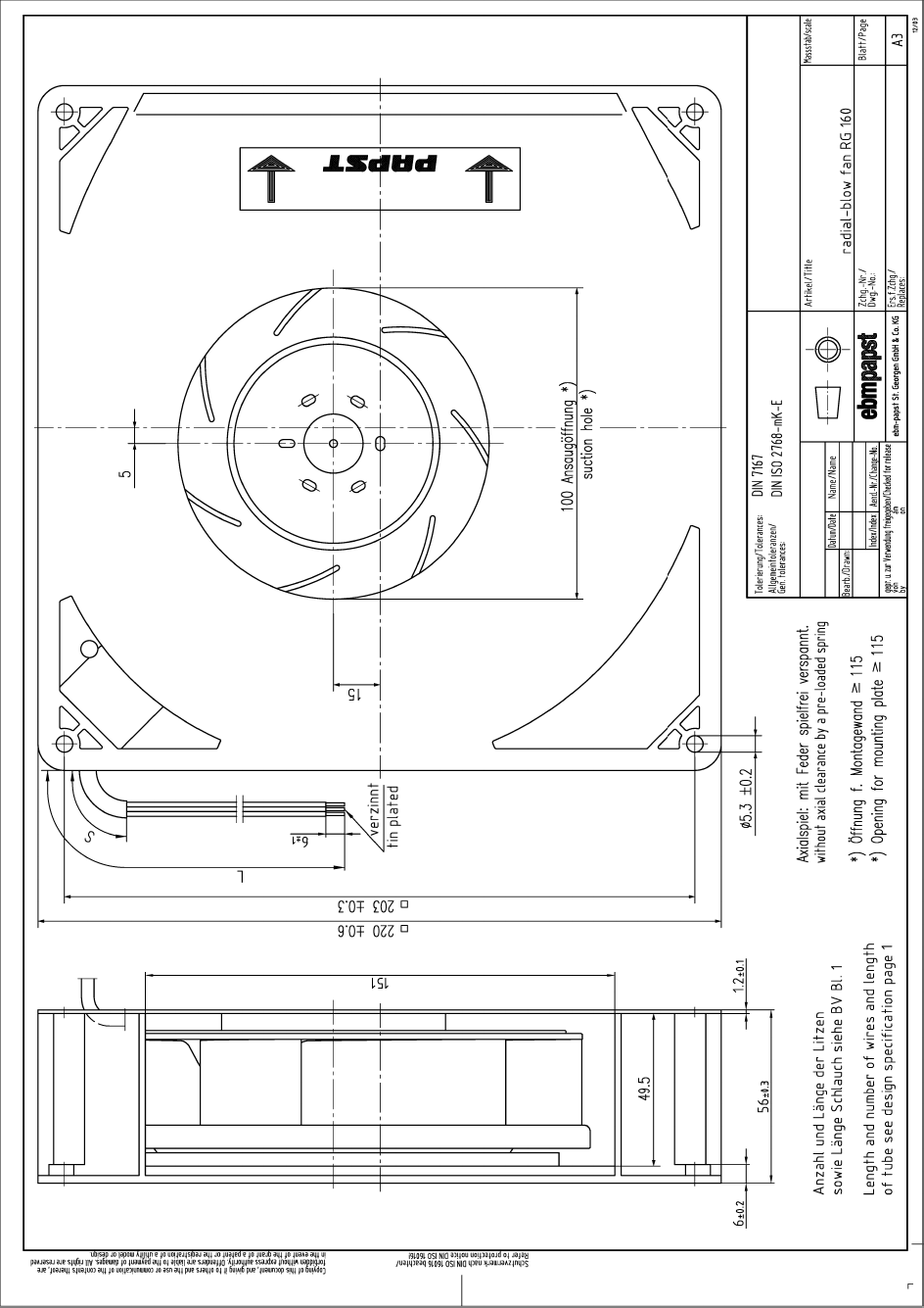 Blower DC 220x220x56mm 24V 209m³/h IP68 RG Series