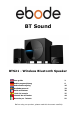 2. Introduction The best music sound ever with the ebode BTS21! Stream your music from any Bluetooth device like Smartphone, tablet or laptop to the BTS21 and you are assured of great audio quality with this wireless 2.1 stereo set. The BTS21 speakers and subwoofer will give your music an extra dimension with powerful and clear sound. With the buttons on the BTS21 Sound Speaker Set you can adjust the settings the way you want.