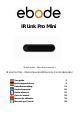 Användarmanual INNEHÅLL 1. För bästa användning 2. Introduktion 3. Innehåll 4. Hur fungerar ebode IR Link Pro Mini? 5. Finns det förhållanden då ebode IR Link Pro Mini inte fungerar? 6. Installera ebode IR Link Pro Mini 7. Användning 8. Problemlösning 9. Specifikationer 1. För bästa användning För att du ska ha störst möjliga nytta av denna produkt och för att du ska kunna använda den på ett säkert sätt är det viktigt att du läser igenom den här manualen och är särskilt noga med säkerhetsinstruktionerna.