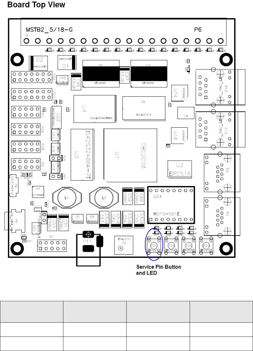 Figure 1. Service Pin Button and LED on the DBC2C20 Development Board