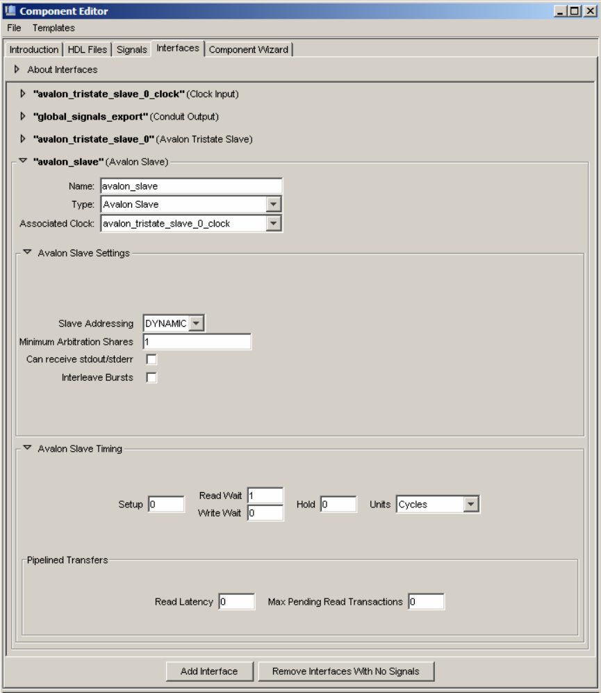 Figure 22. Quartus II Component Editor Dialog for FTXL Parallel I/O Interfaces (Part 2)