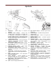 Apraksts 1. 2. 3. 4. 5. 6. 7. 8. 9. 10. 11. Klusinātājs – novērš skaĦu un samazina karstumu. Priekšējais rokas aizsargs – aizsargs starp priekšējo rokturi un zāăa ėēdi, lai aizsargātu roku no iespējamiem ievainojumiem un kalpotu kā papildus drošības līdzeklis, lai nodrošinātu kontroli pār zāăi, gadījumā, ja roka noslīd no roktura. Šo aizsargu izmanto ėēdes bremzes aktivizēšanai, t.i. – apturētu ėēdes rotāciju.