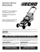 Operator’s Manual Manuel d’utilisation Manual del operador 58 Volt 21 in. Lawn Mower Tondeuse de 21 po, 58 V Podadora de 21 pulg., 58 V CLM-58V Batteries and Chargers Sold Separately Piles et chargeur vendus séparément Baterías y el cargador se venden por s eparado Your lawn mower has been engineered and manufactured to our high standard for dependability, ease of operation, and operator safety. When properly cared for, it will give you years of rugged, trouble-free performance.