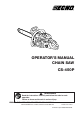 OPERATOR’S MANUAL CHAIN SAW CS-450P WARNING Read the instructions carefully and follow the rules for safe operation. Failure to do so could result in serious injury.