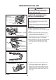 Cleaner cover knob AIR FILTER • Check before every use. • Loosen cleaner cover knob and remove air cleaner cover and filter. • Brush off dust lightly, or clean with compressed air, or replace the air filter. • Reinstall air filter and cover. Air cleaner cover Spark plug Air filter cover Air filter CHECK FUEL SYSTEM • Check before every use. • After refueling, make sure fuel does not leak from around fuel pipe, fuel grommet or fuel tank cap. • In case of fuel leakage there is a danger of fire.