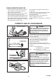 CHAIN BRAKE OPERATION • Set the lever in the unlocked position before starting to cut. • If the brake is tripped by kickback reaction, the chain will stop immediately. Release the throttle to avoid possible damage to the engine or clutch. • Do not attempt to operate the engine with the brake locked. Kickback motion Kickback motion TESTING THE BRAKE • Start the engine on a solid level surface and run at a fast idle until warm.