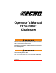 DCS-2500T ASSEMBLY Chain Lubricant Proper lubrication of the chain while in operation minimizes friction between the chain, the guide bar and sprocket. Use ECHO genuine chain oil or ECHO recommended chain oil specially formulated for bars and chains for proper lubrication. These oils contain tackifiers, anti-aging and anti-oxidizing agents. Consult your ECHO dealer for the proper chain oil. Never use waste or reclaimed oil to avoid various malfunctions of the oil system, chain and guide bar.