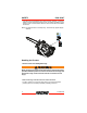 DCS-2500T OPERATION Removing the Battery To remove battery, press battery latch, and slide battery out. When the battery is difficult to remove: 1. Place saw on a hard flat surface. 2. Press battery latch and push bottom of battery against the hard surface. 3. Slide battery out of saw. Hanging and Lifting Hooks Hanging Hook (A): Attach a rope or carabiner to prevent accidental dropping of saw while working in a tree. C B Lifting Hook (B): Use to hook and unhook from harness in one quick movement.