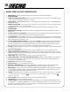 SERVICING INFORMATION PARTS Genuine ECHO Parts and ECHO REPOWER™ Parts and Assemblies for your ECHO products are available only from an Authorized ECHO Dealer. When you do need to buy parts always have the Model Number and Serial Number of the unit with you. You can find this information on the engine housing. For future reference, write them in the space provided below. Model No. ________________ S.N.