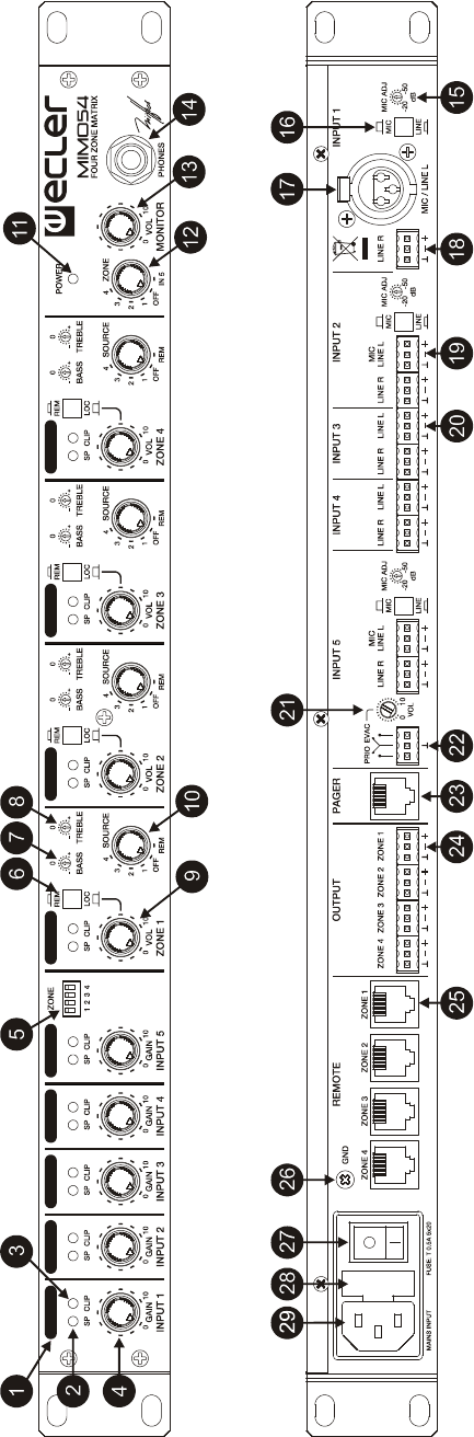 9. Lautstärke-Regler OUTPUT, VOL ZONE