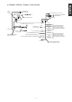 Deutsch Exemple de connexion du système Avertissement English • Ne coupez jamais l'isolant du câble d'alimentation, ou n'utilisez pas celui-ci pour l'alimentation d'un autre équipement. Si la capacité électrique nominale du câble d'alimentation est dépassée, un incendie ou une électrocution risquera de s'ensuivre. • Les câbles doivent être fixés avec du ruban ou une méthode de fixation similaire pour éviter toute gêne pendant la conduite.