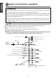 English System connection example • Never cut the insulation on the power wire or use it to power any other equipment. If the rated current capacity of the power wire is exceeded, fire and electric shocks may result. • The wires should be secured with tape or a similar securing method to prevent any obstructions while English driving. If they get wound or entangled around components such as the steering wheel, shifting lever, or brake pedal, accidents may result.