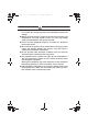 CD8455.book 8 ページ 2004年12月11日 土曜日 午後7時24分 Caution ● Do not short, disassemble or heat the batteries, or place them in fire or water. Fire and injuries may result from battery rupture and leakage. ● Store the remote control in a place away from direct sunlight, high temperatures, and high moisture levels. The case may change shape, and the batteries may rupture and leak. ● Do not use this equipment except for in-vehicle use. Shocks or injuries may result.