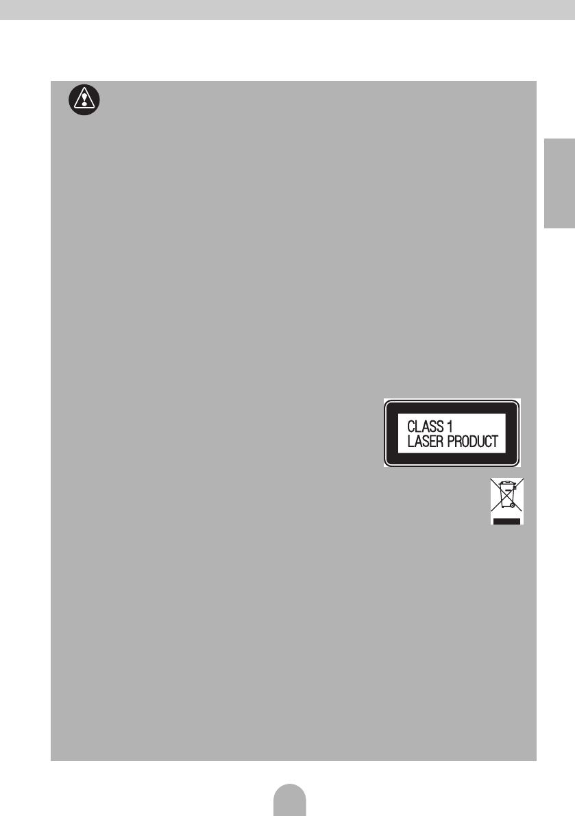 • A CLASS 1 LASER PRODUCT label is affixed to the