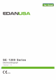 SE-1200 Series Electrocardiograph User Manual Acquisition Mode: simultaneously 12 leads A/D Resolution: 24 bits Time Constant: ≥3.2s Frequency Response: 0.05Hz ~ 150Hz (-3dB) Gain: 2.5, 5, 10, 20, 10/5, AGC (mm/mV) Input Impedance: ≥50MΩ (10Hz) Input Circuit Current: ≤0.01μA Input Voltage Range ≤±5 mVpp Calibration Voltage: 1mV±2% DC Offset Voltage: ±600mV Noise: ≤12.5 μVp-p Multichannel crosstalk ≤0.5mm Technical Specifications AC Filter: On/Off Filter DFT Filter: 0.05Hz/0.