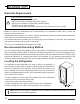 Clearance Requirements Notes: • Choose a location that has ambient temperatures above 50° F and below 90° F. Operation outside these temperatures may result in lowered efficiency or cause other adverse effects. • This unit MUST be installed in an area protected from the elements, e.g. wind, rain, water spray or drips. • The refrigerator should not be located next to ovens, grills, or other heat sources. • Do not kink or pinch the power supply cord between the refrigerator and the wall or cabinet.