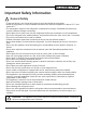 Table of Contents Important Safety Information........................................................................................... 2 First-Time Operating Instructions.................................................................................... 5 Introduction...................................................................................................................... 5 Parts Identification..................................................................................................