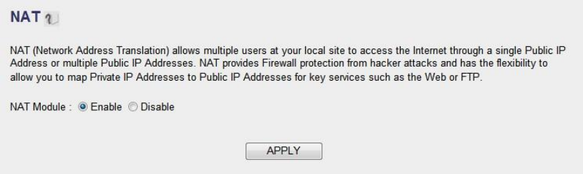 To enable NAT function, please select „Enable‟ for „Enable NAT module
