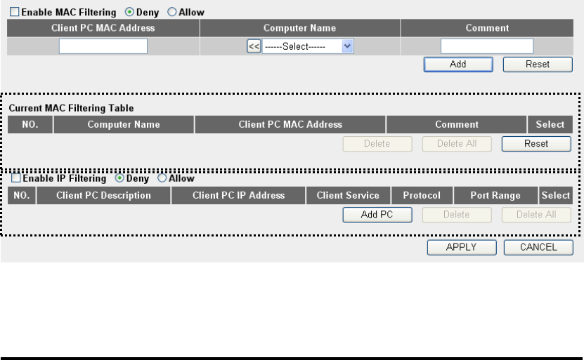 Filtering (1): filtering, and please select „Deny‟ or „Allow‟ to