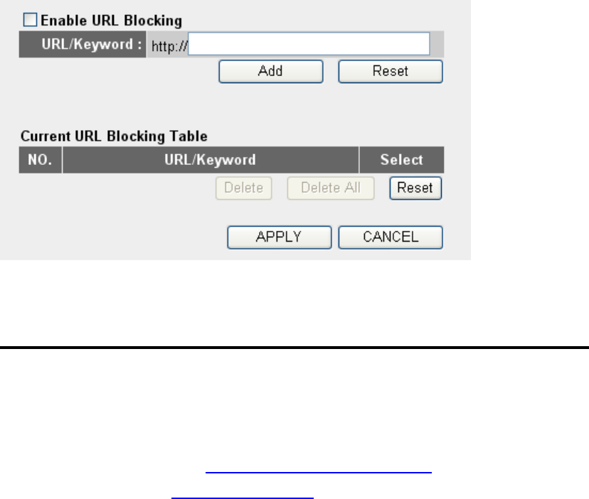 then click „URL Blocking‟, and the following message will be displayed