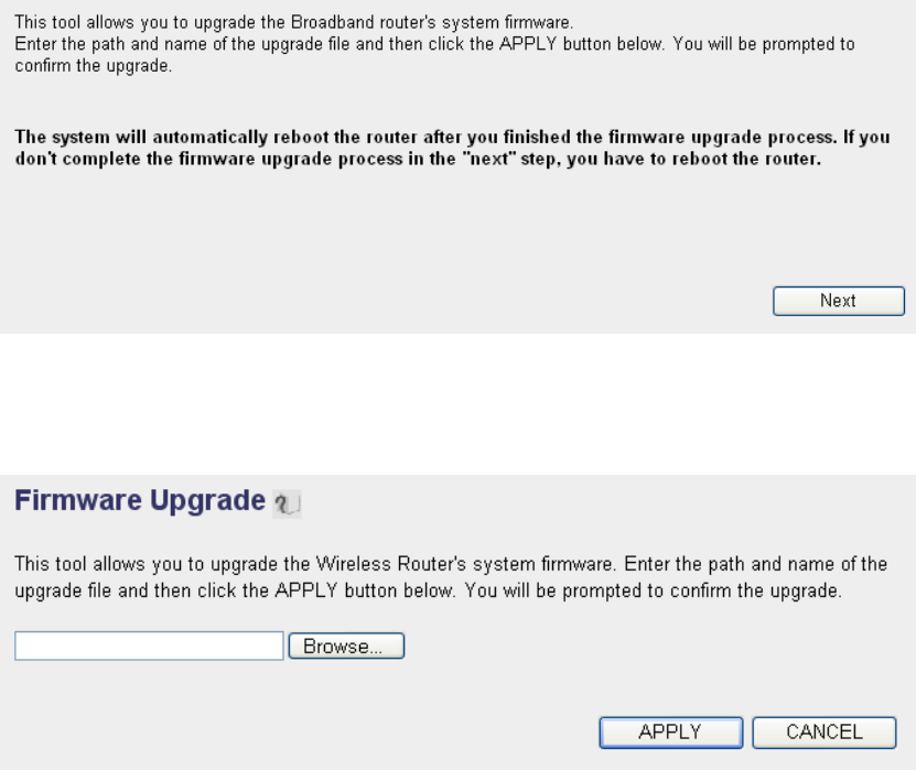 interface, then click „Firmware Upgrade‟ on the left of web management