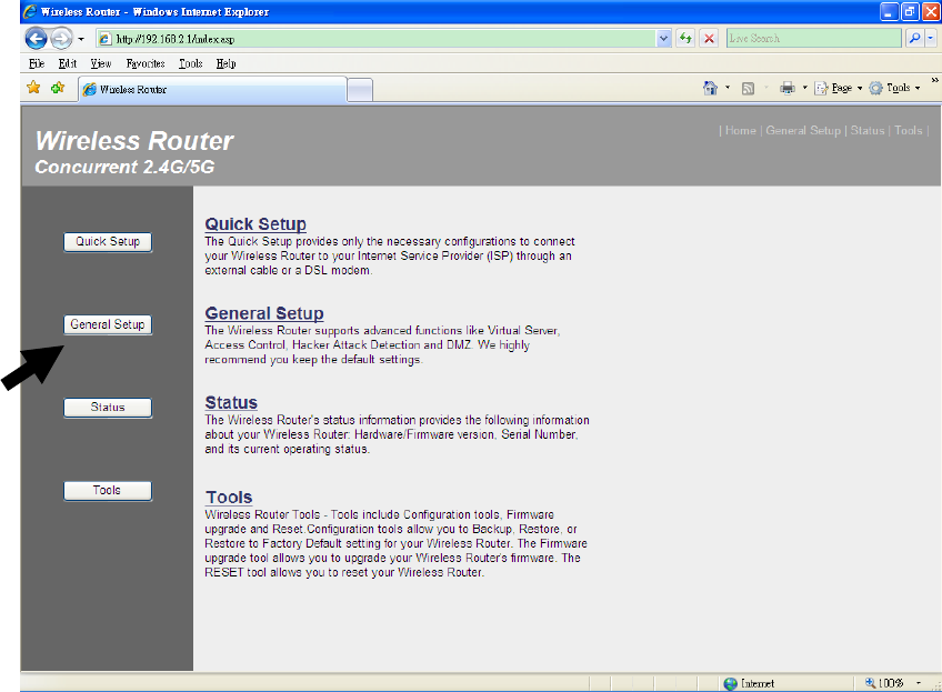 the left, or click „General Setup‟ link at the upper-right corner of web