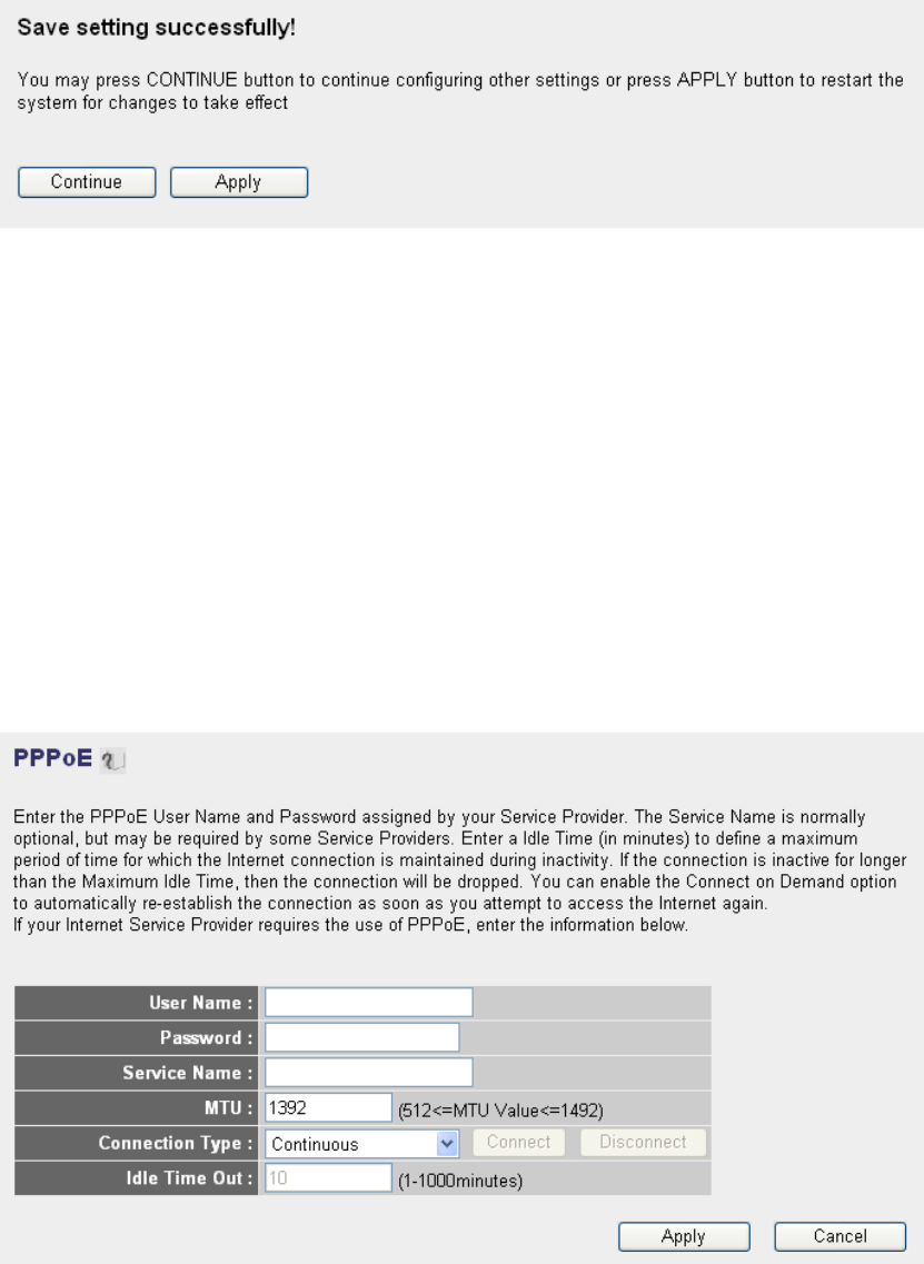 other setup procedures, or click „Apply‟ to reboot the router so the