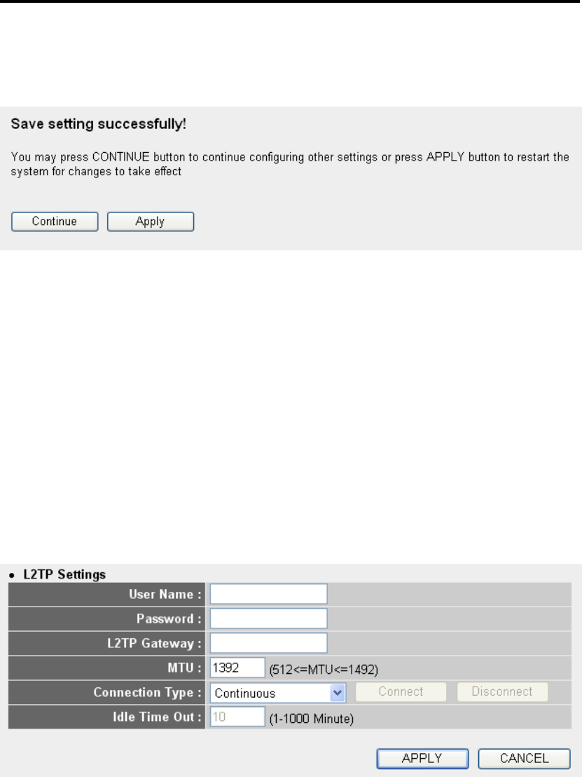other setup procedures, or click „Apply‟ to reboot the router so the