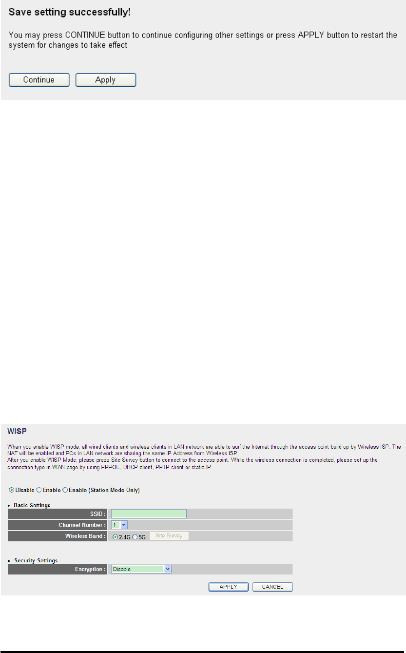 other setup procedures, or click „Apply‟ to reboot the router so the