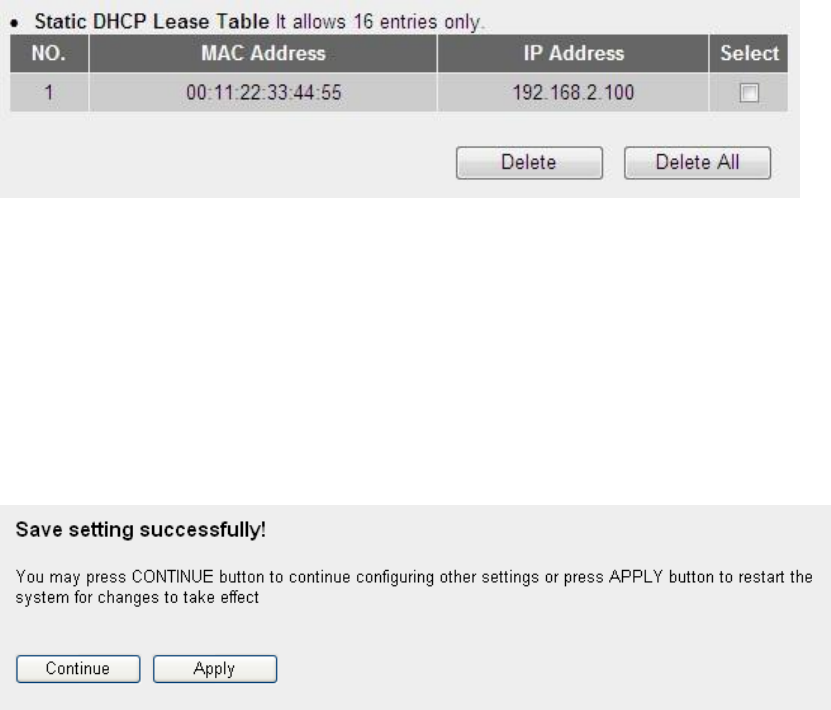 MAC address and IP address mapping (1), then click „Delete Selected‟