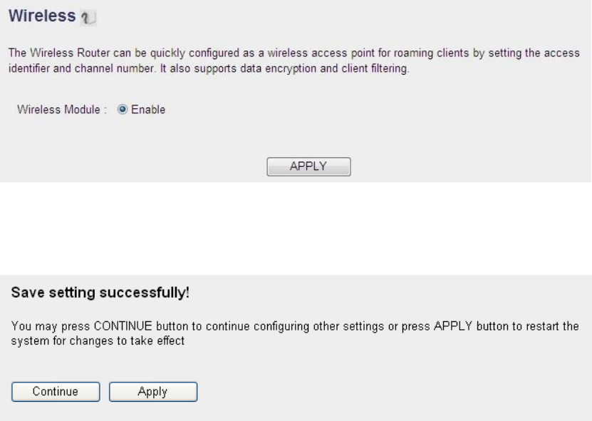 other setup procedures, or click „Apply‟ to reboot the router so the