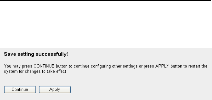 router setup, or click „Apply‟ to reboot the router so the settings will take