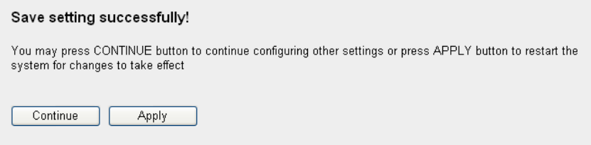 other setup procedures, or click „Apply‟ to reboot the router so the