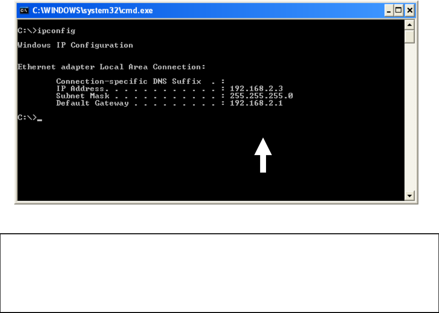followed by „Default Gateway‟ (In this example, the IP address of router