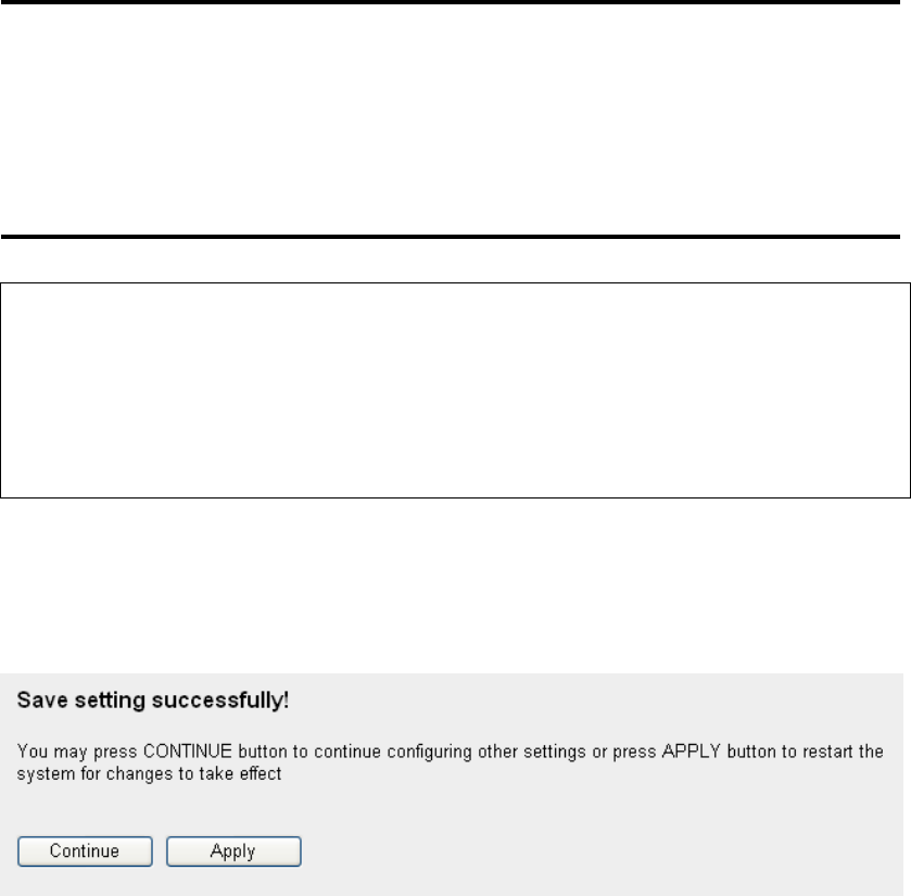 other setup procedures, or click „Apply‟ to reboot the router so the