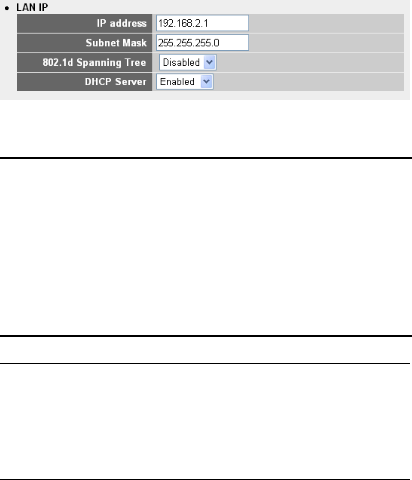 are three setup groups here: „LAN IP‟, „DHCP Server‟, and „Static