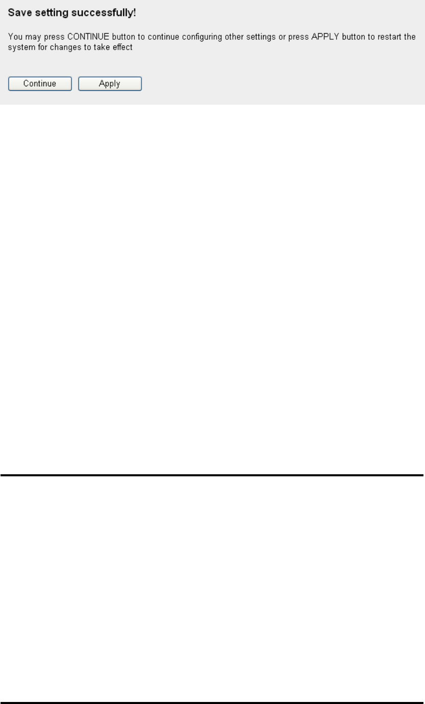 other setup procedures, or click „Apply‟ to reboot the router so the