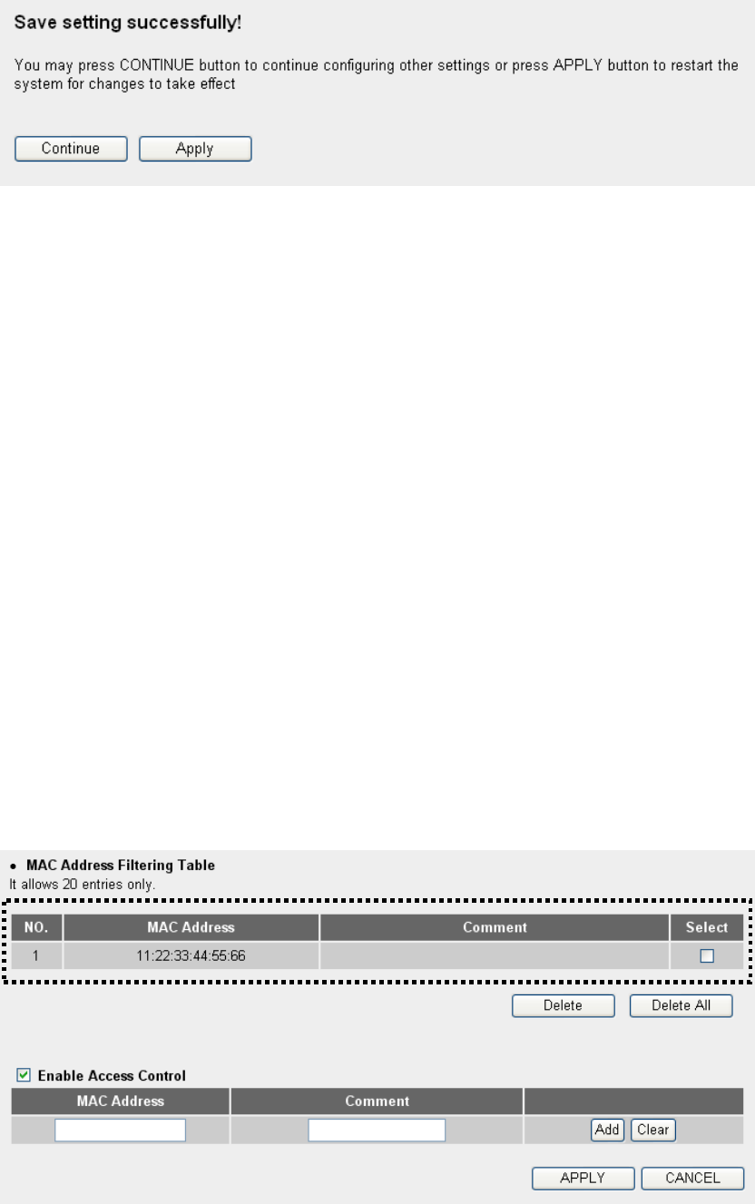 Up to 20 MAC addresses can be assigned by using this function. Please