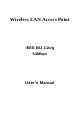 Introduction 1.1 Package Contents The Access Point includes the following items: y One Access Point y One Power Adapter y One User’s Manual 1.2 y y y y y y y 1.3 y y y y y y y y y y y y y Features Complies with the IEEE 802.11b/g (DSSS) 2.4GHz specification. High data rate 54Mbps network speed. Seamlessly integrate wireless and wired Ethernet LAN networks. Auto rate fallback in case of obstacles or interferences.