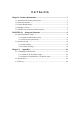 CATALOG Chapter I: Product Information ...................................................................... 1 1-1 Introduction and safety information ................................................................ 1 1-2 Safety Information ........................................................................................... 2 1-3 System Requirements ...................................................................................... 3 1-4 Package Contents ..........................................