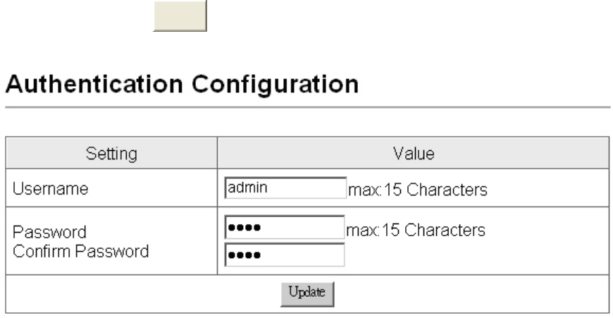 1. Username: Type in the new user name (The default value is ‘admin’).