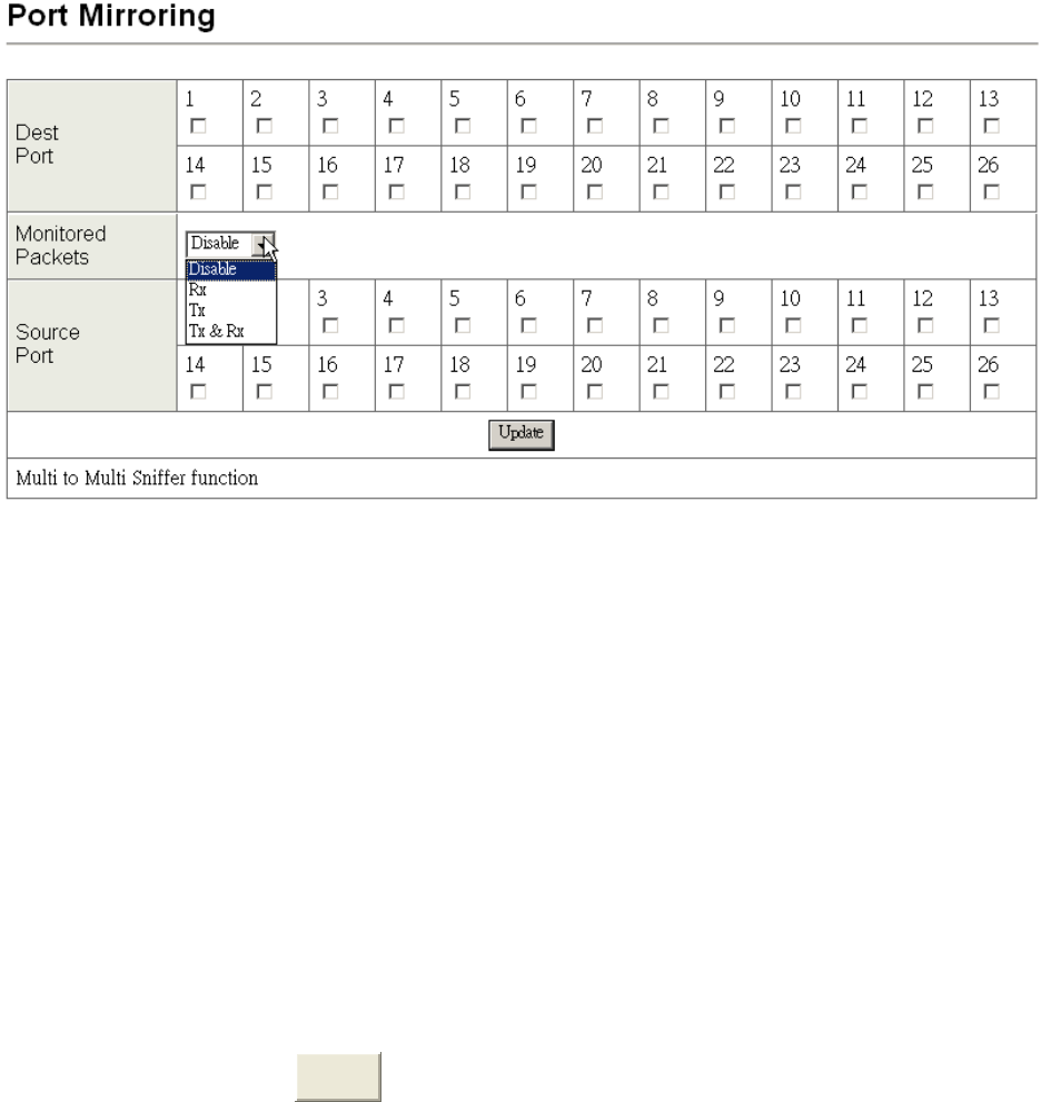 traffic will be copied to mirroring (destination) port. Users can select multiple